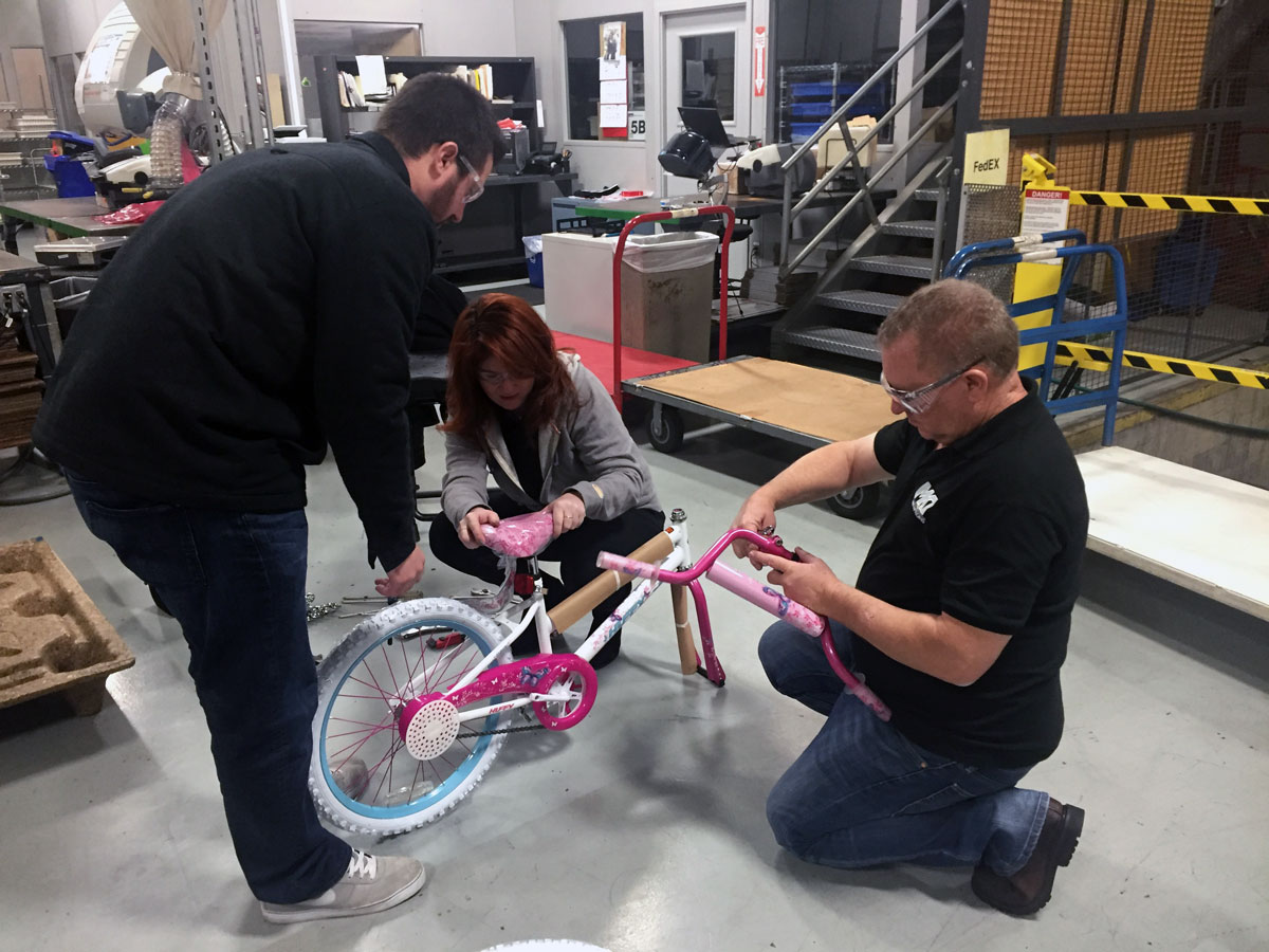 This year MKT founder Mike and his three sons traveled to Richmond to participate in the bike assembly. There were about 20 volunteers and along with their families help were able to build the bikes in just four hours.
